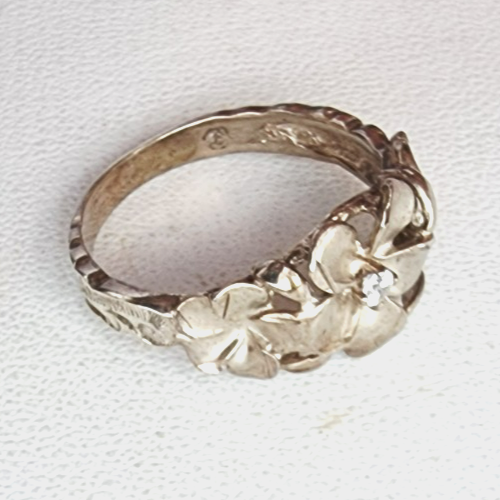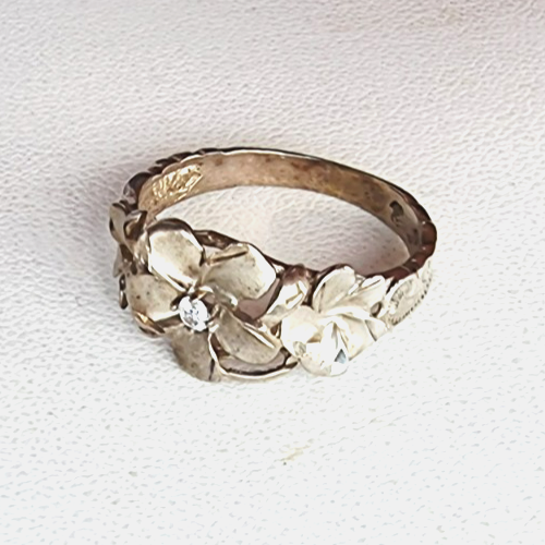 VINTAGE 925 STERLING SILVER WHITE TOPAZ FLORAL DESIGN RING SIZE 8.75 N0465