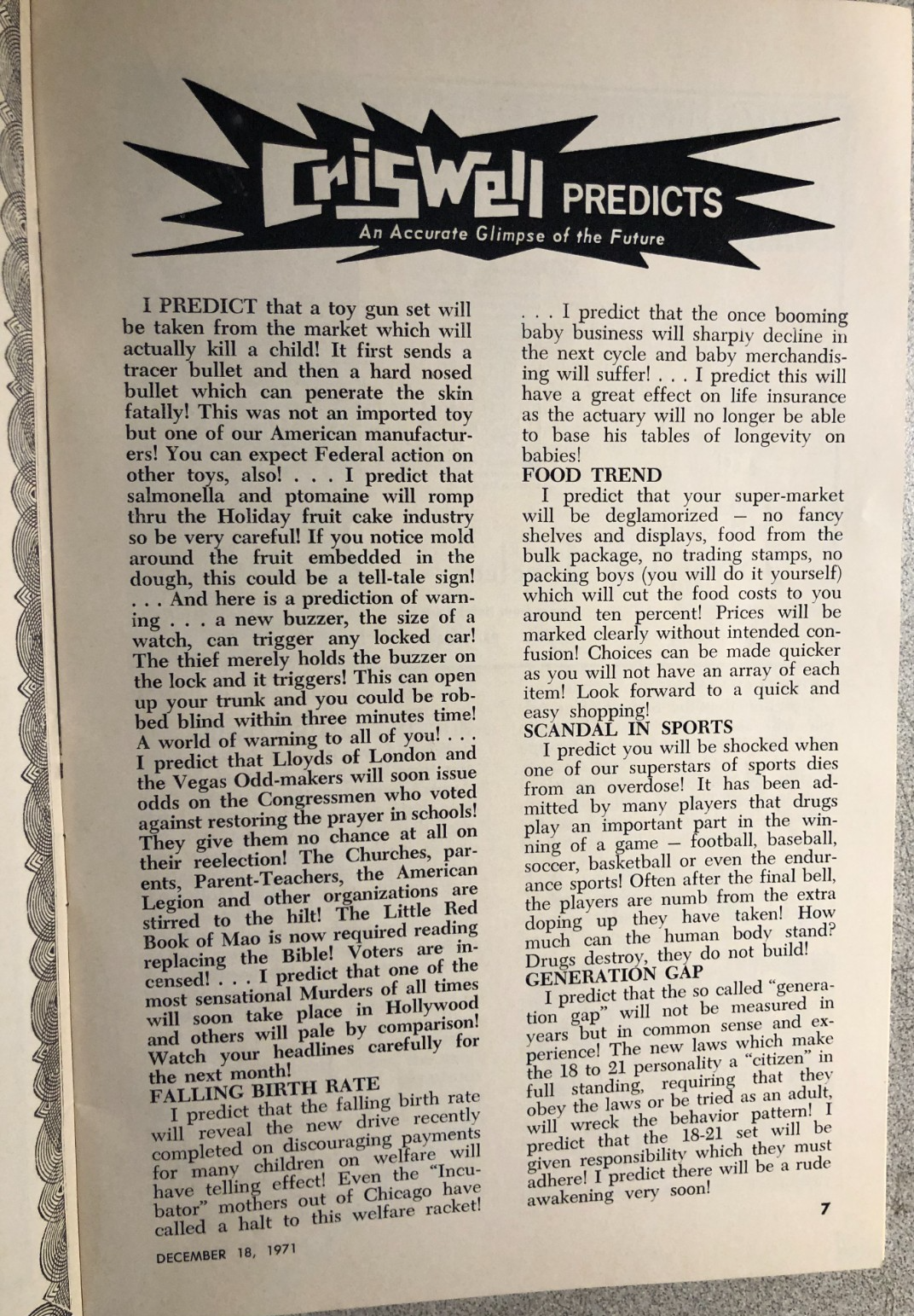 FABULOUS LAS VEGAS MAGAZINE December 18, 1971 Criswell Predicts, etc.