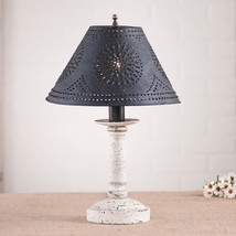 BEDSIDE TABLE LAMP with Punched Tin Shade - Distressed VINTAGE WHITE Finish USA