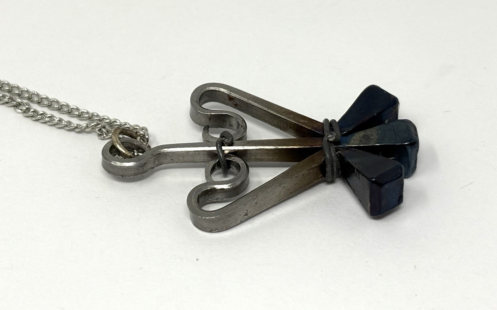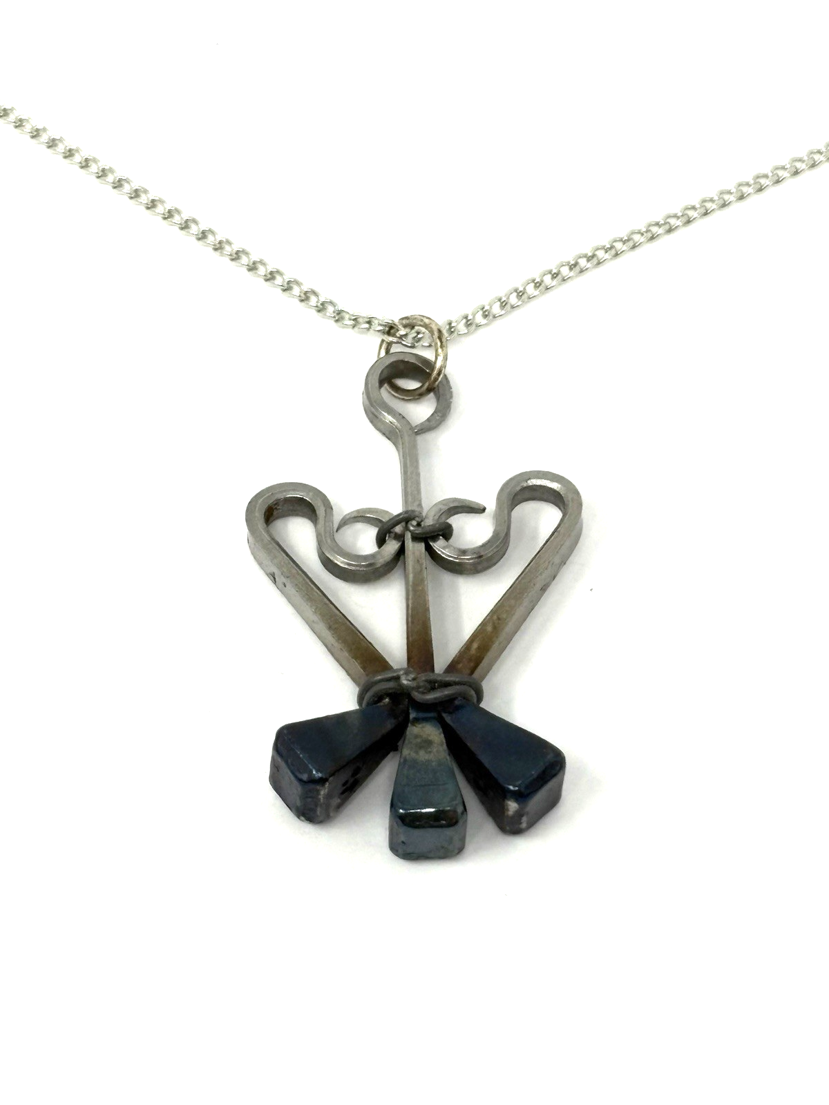 Black and silver pendant on a silvertone 18" chain
