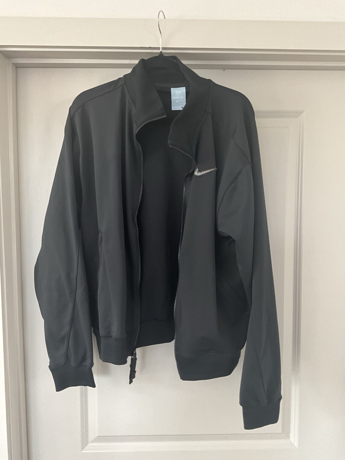 The Nike Nocta Drake x Swarovski Swoosh Black Track Jacket in size Large is a stylish activewear piece designed for men. Made from polyester, this jacket features a black color and a sleek track jacket style. It is suitable for various activities such as gym training, tennis, walking, and more. The collaboration with Swarovski adds a touch of luxury, making it a versatile and fashionable choice for active individuals.