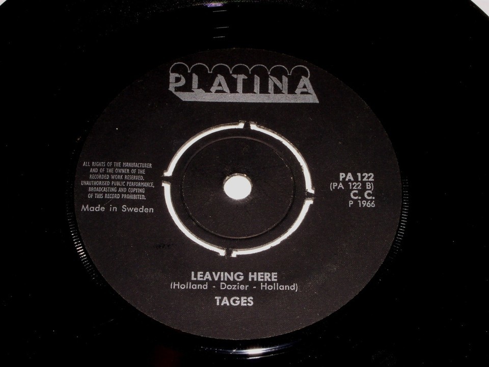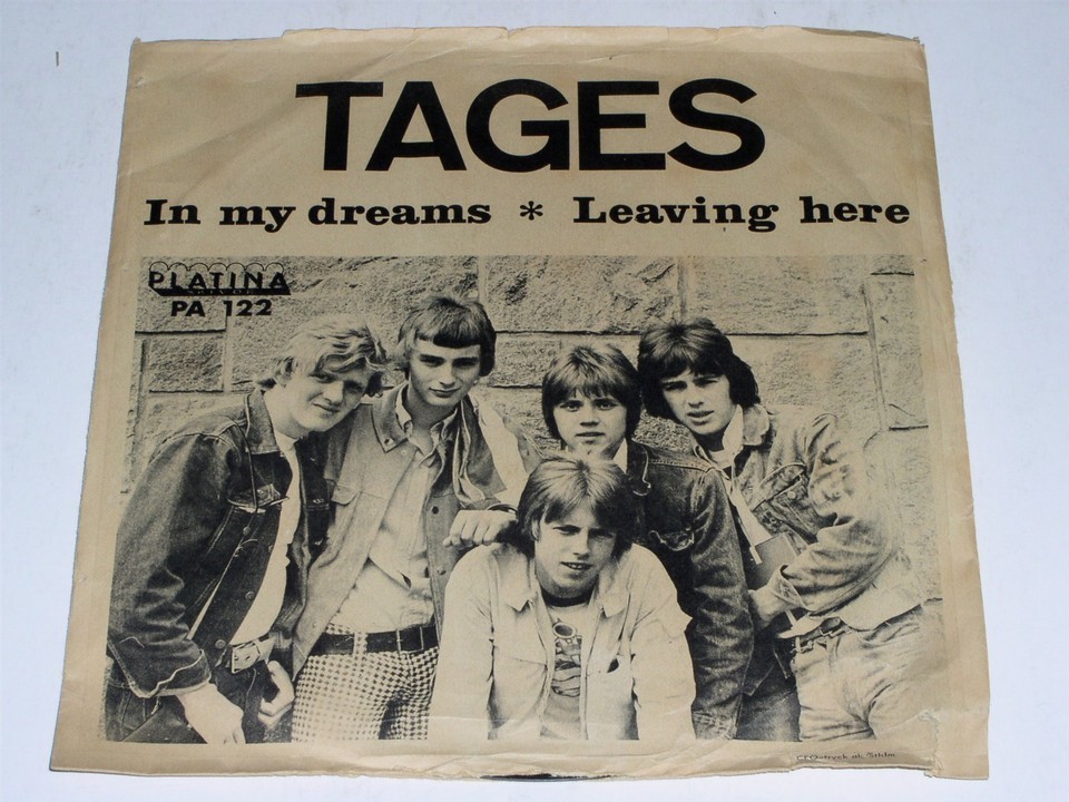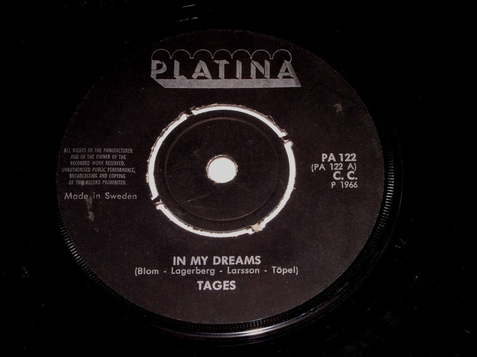 This is a vintage Swedish import 45 rpm phonograph record by Tages, entitled, "In My Dreams". Flipside: "Leaving Here". Record label: Platina PA 122.
