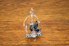 Clear and Blue Glass Hanging Bird in a Cage Figurine 3"