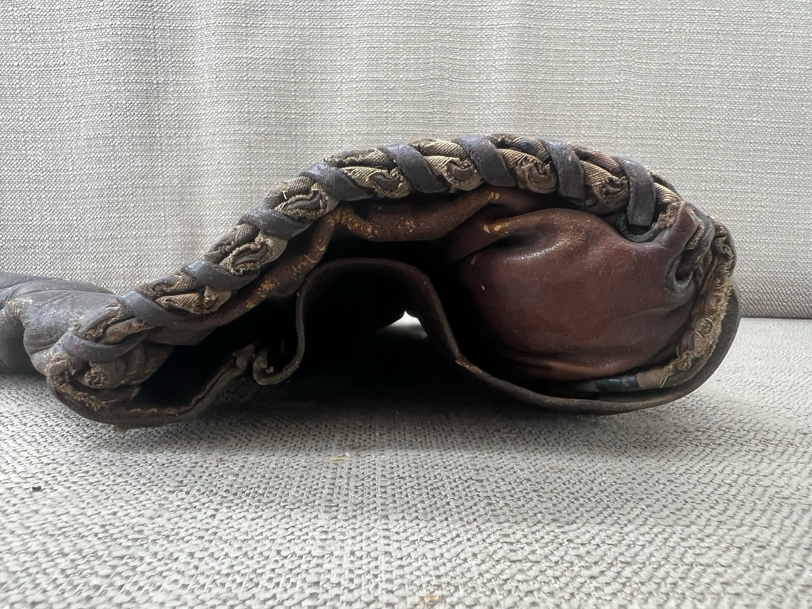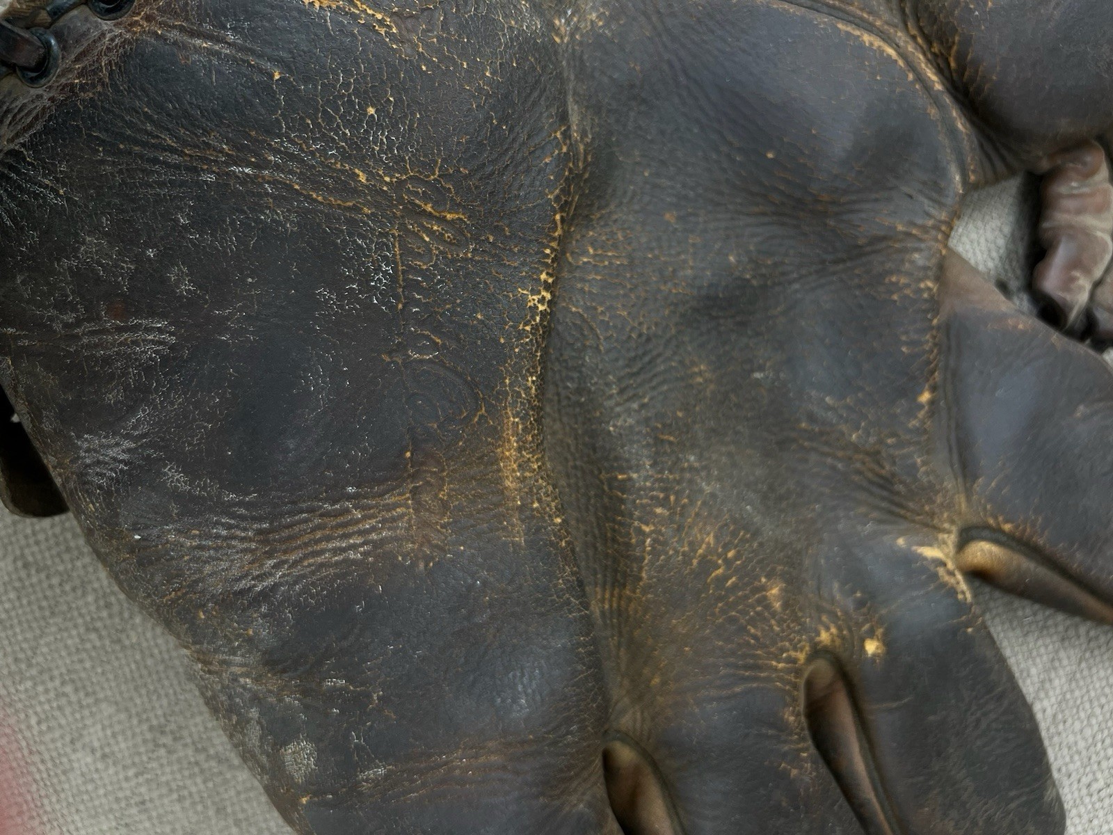 This glove is very worn. The name shows better in person but it is still worn.