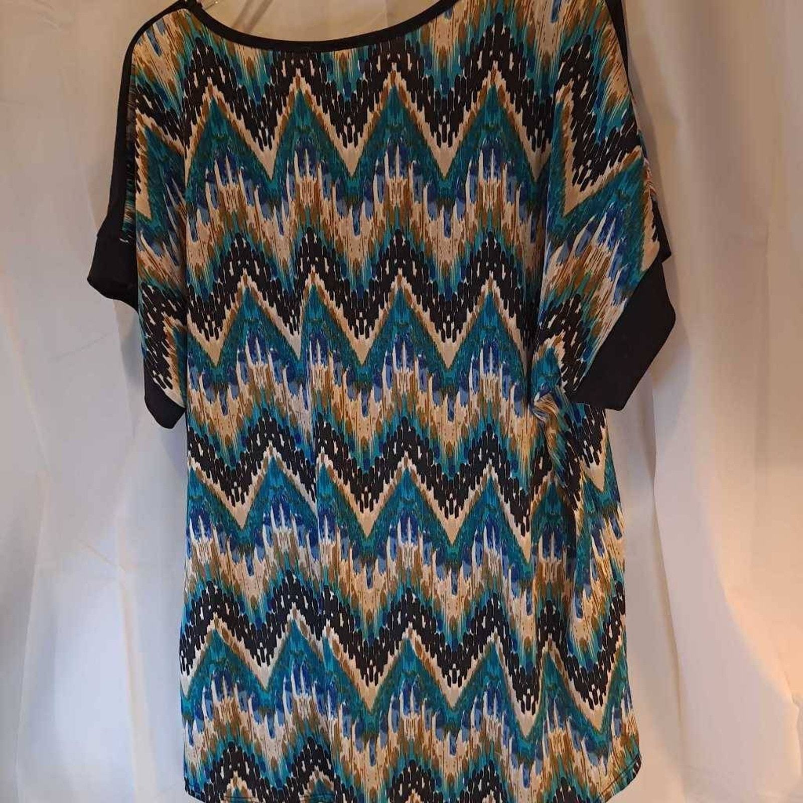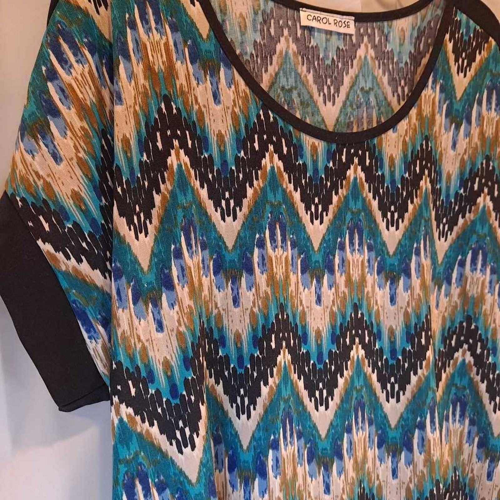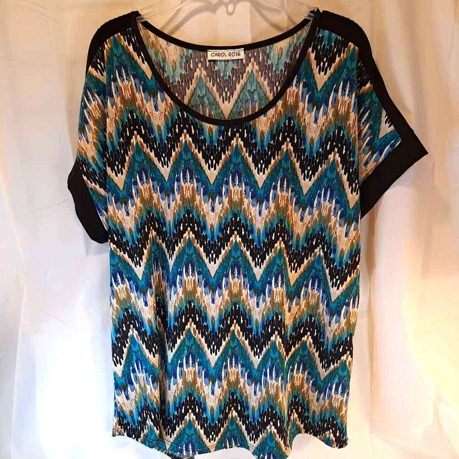 Carol Rose Women's Blouse Blue Multicolor Chevron Short Sleeve Scoop Neck XL