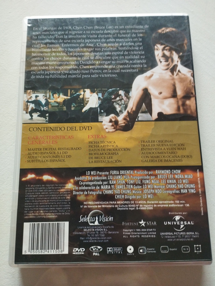 Oriental Fury Fist Of Fury Bruce Lee - DVD Region 2 Spanish Cantonese- show o...