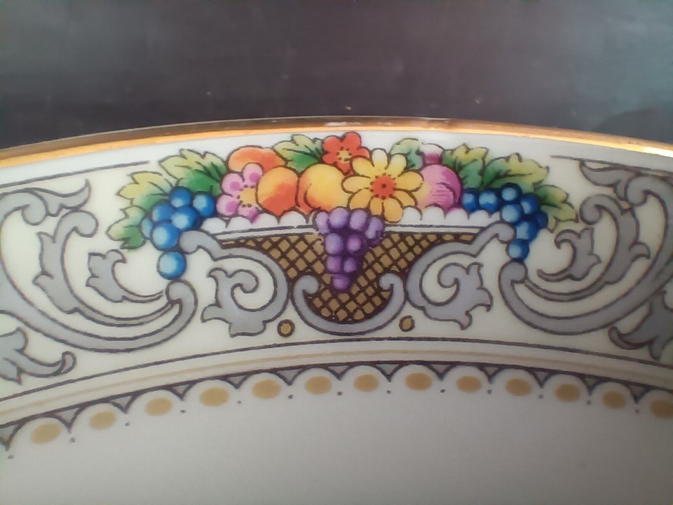 "The Hutschenreuther Selb Bavaria Serving Dish "Jaffrey" from c.1925-1939 is a unique and collectible piece of dinnerware. Made in Germany, this antique dish features an Art Nouveau style and is a single unit. Although not handmade, it showcases the craftsmanship and quality of Hutschenreuther's products during this time period. Perfect for serving food or as a decorative piece in a kitchen or dining room, this serving dish is sure to add a touch of elegance and history to any collection."
