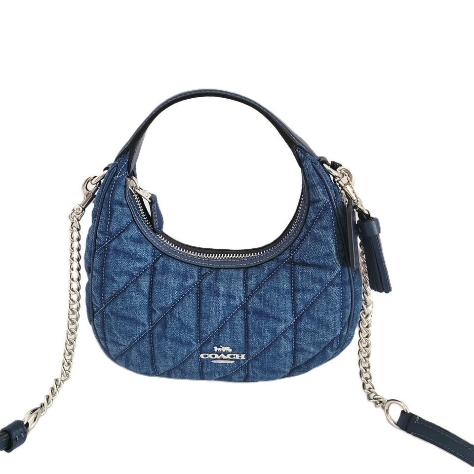 Coach CBK89 Carmen Mini Crossbody Quilted Denim Top Handle Handbag Blue