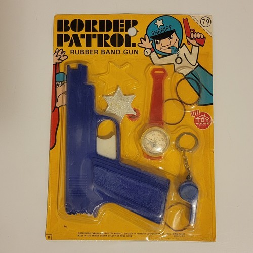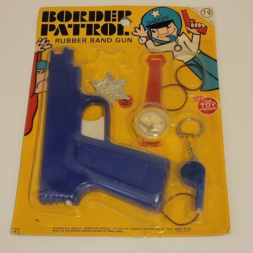 New in Package Vintage 60s World Toy House Border Patrol Rubber Band Gun Plastic Toys Hong Kong. It's a super cool piece of history!