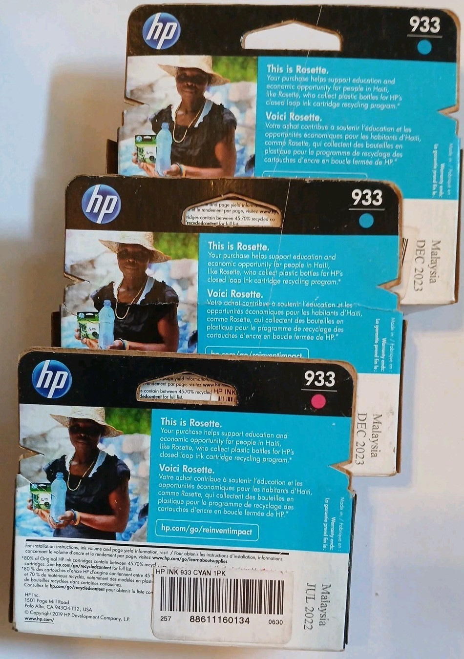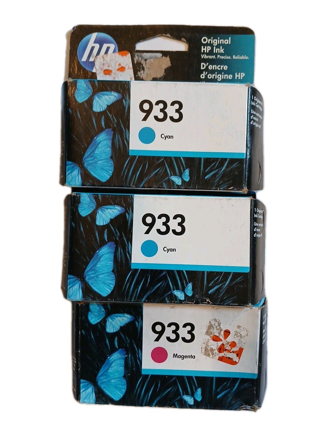 NEW Genuine HP 933 (2) Cyan and (1) Magenta Ink Cartridges