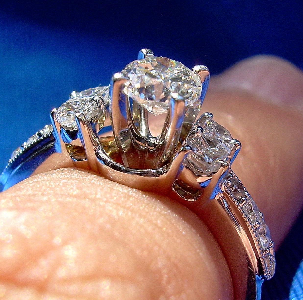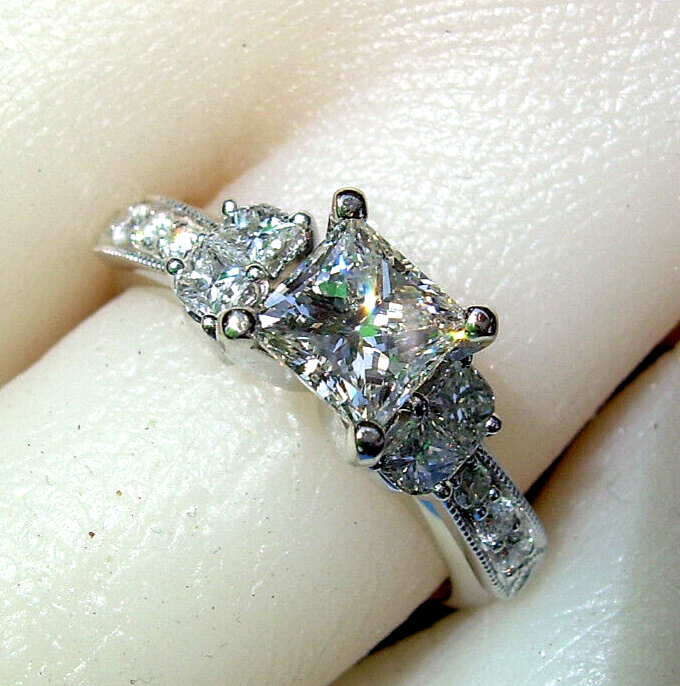 0.50 carat round diamond and 3/4 carat princess cut diamond rings.