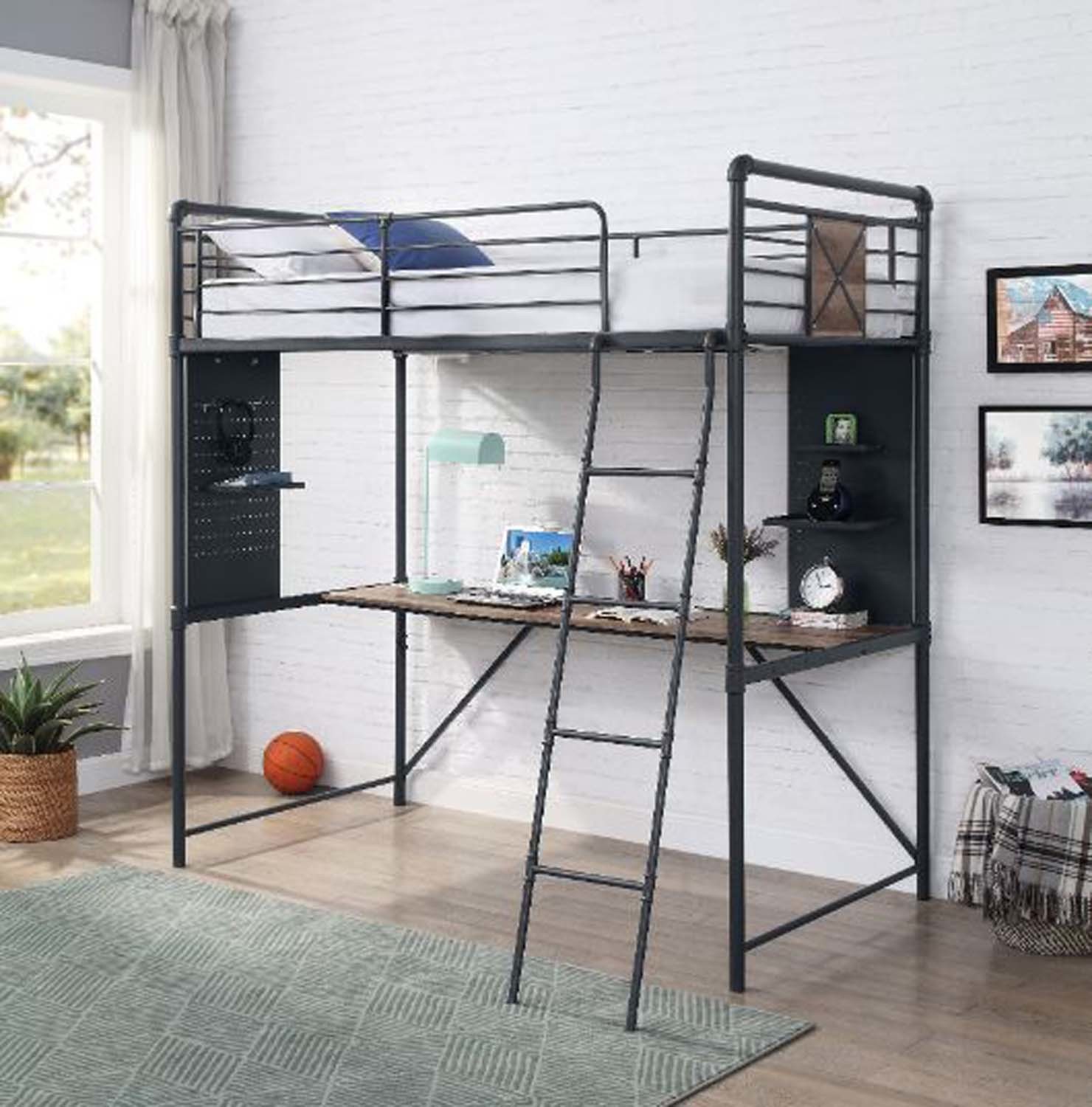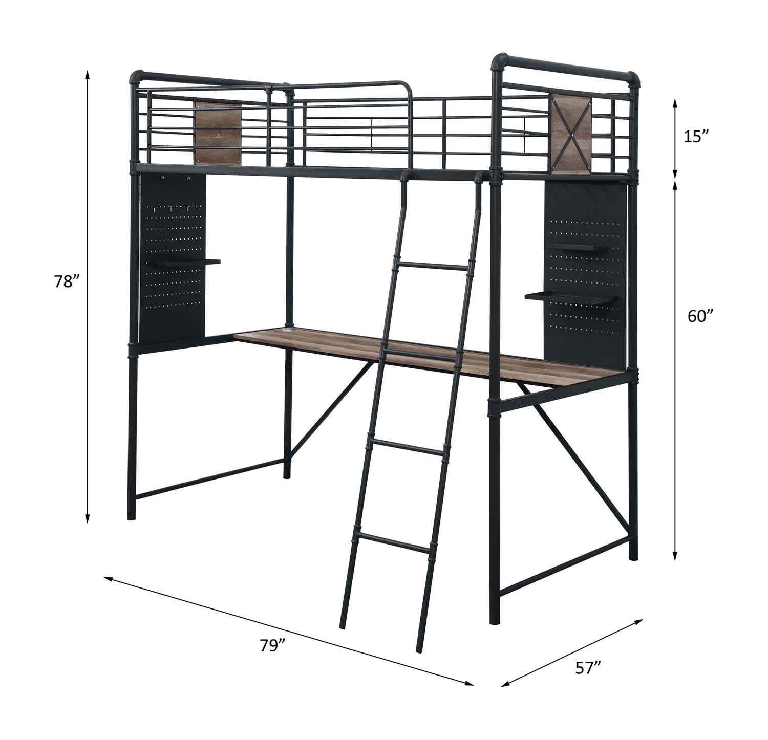 Cordelia Twin Loft Bed w/Desk, Antique Oak, Sandy Black & Dark Bronze