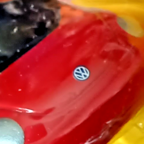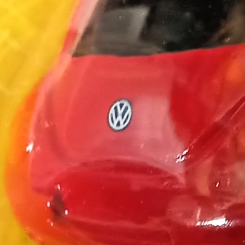 Die cast metal with plastic trim, nice bright red color, great representation of a the New Beetle Bug!
