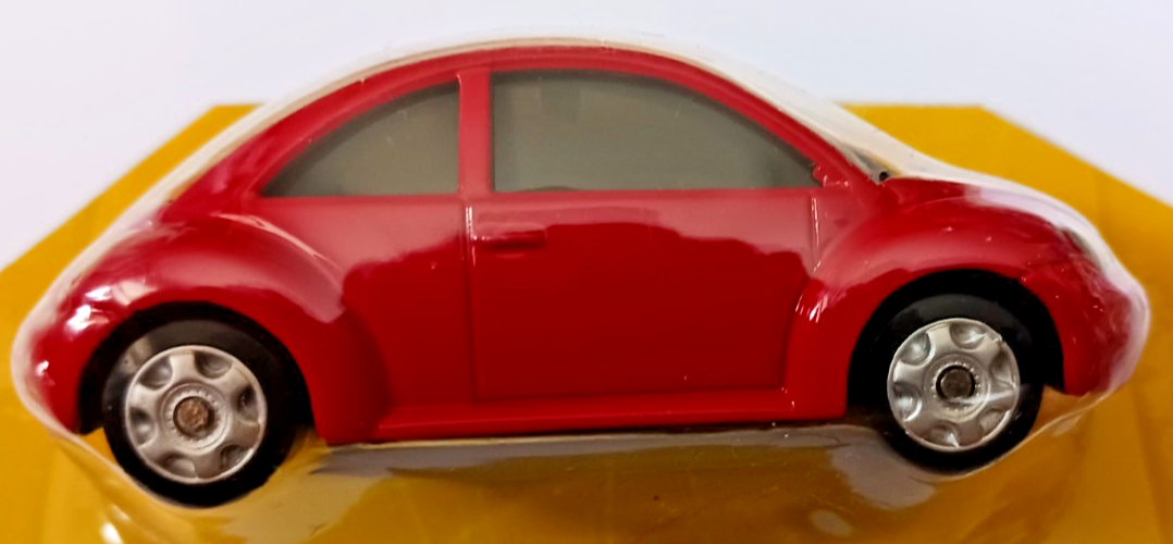 Maisto Volkswagen New Beetle Bug, 1:64 Scale, Red, New Condition on a Cut Card, VW.