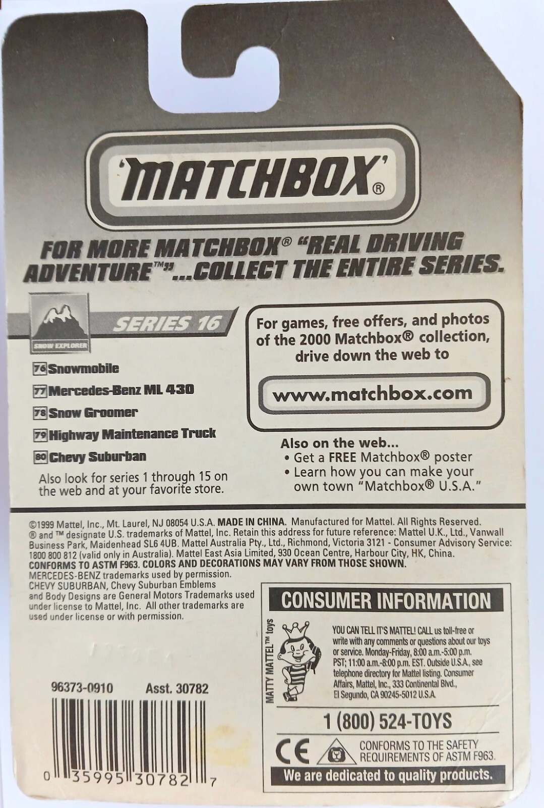 Matchbox Gray with Blue Plow Snow Groomer Snowcat Sno Cat NEW in Package, 1999.