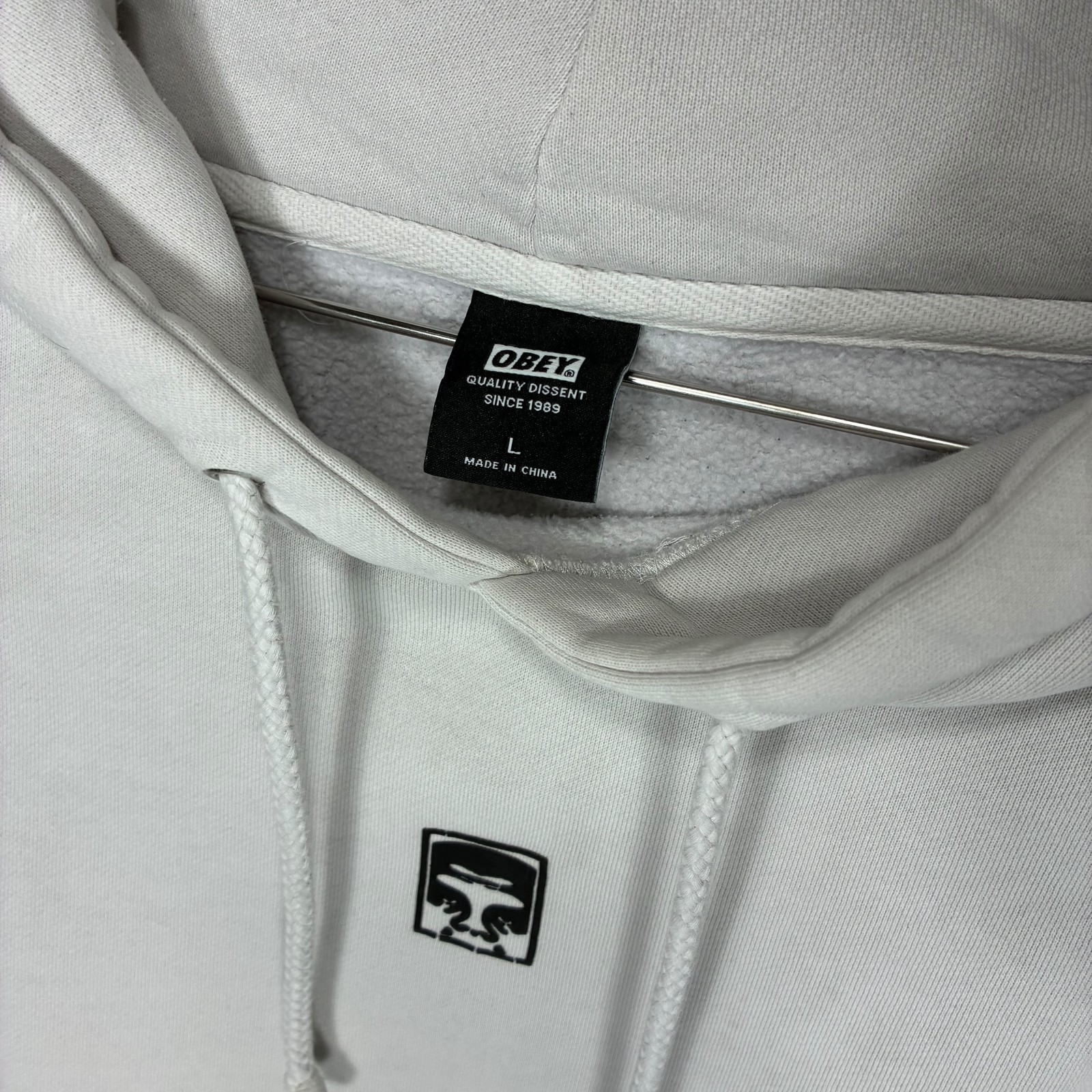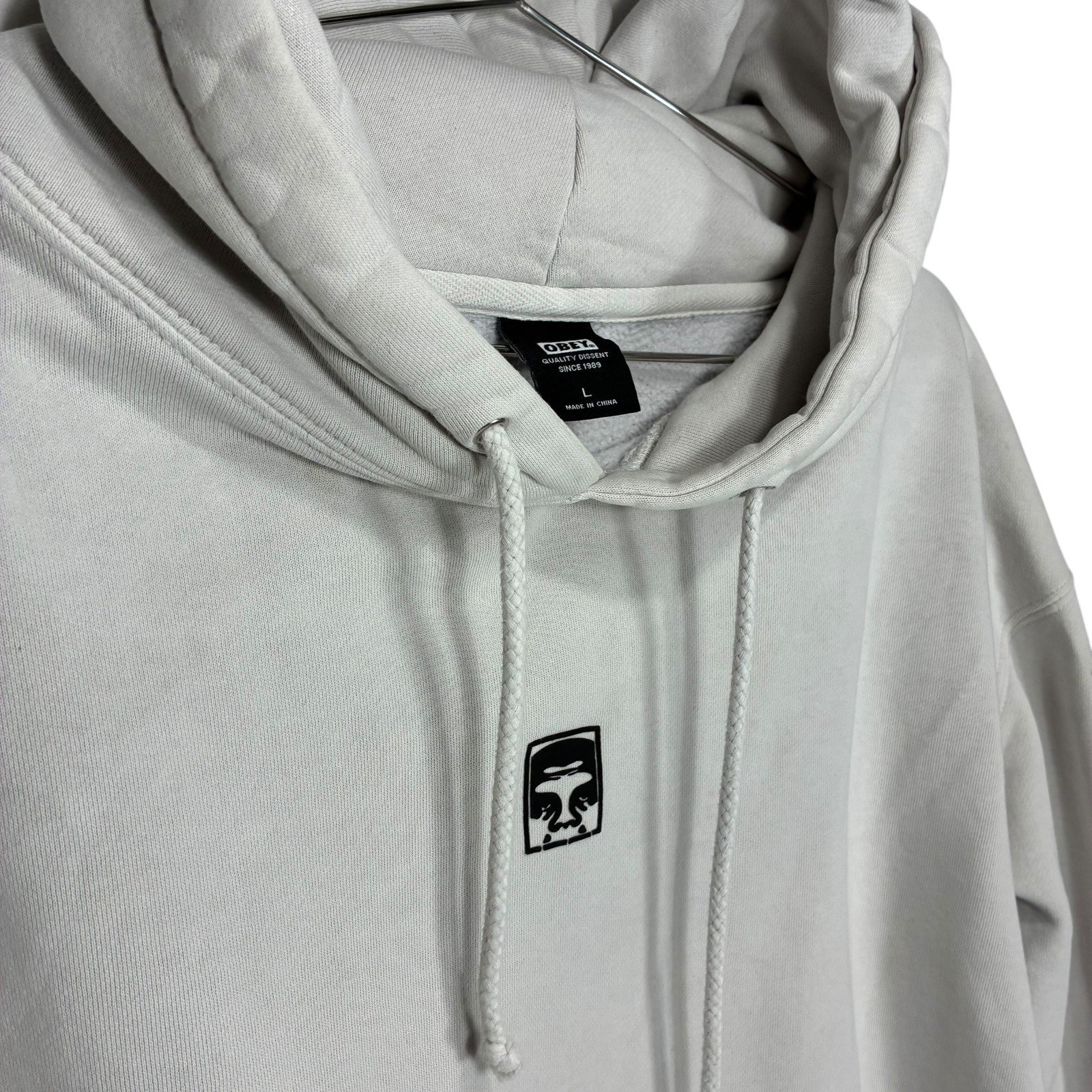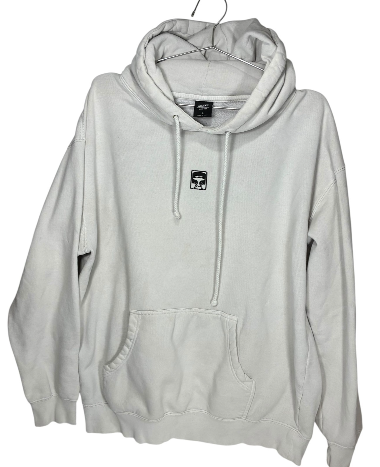 Obey Icon white long sleeve pull-over hooded sweatshirt size L