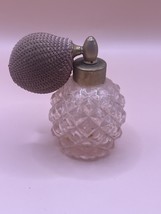 Vintage Diamond Cut Glass Perfume Atomizer Bottle Pink Bulb 1940s-50s Vanity Dec