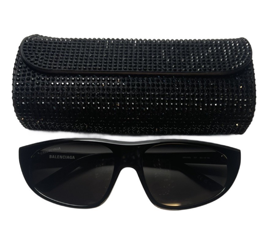 NEW BALENCIAGA Black Logo Sunglasses BB0098S + Rhinestone Case