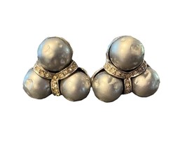 Vintage Signed Carnegie Gray Pearl & Rhinestone Clip On Earrings