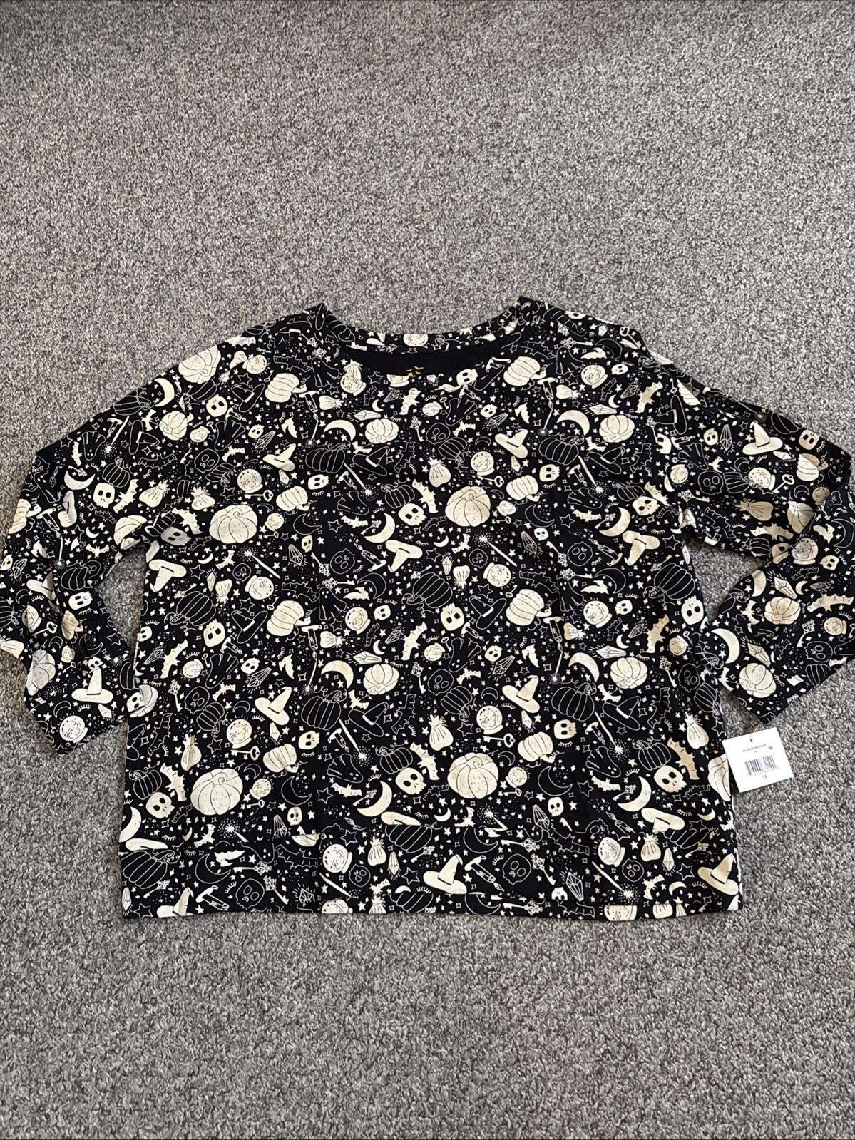 Womens All-Over Print Halloween Lightweight Sweatshirt Size 1X