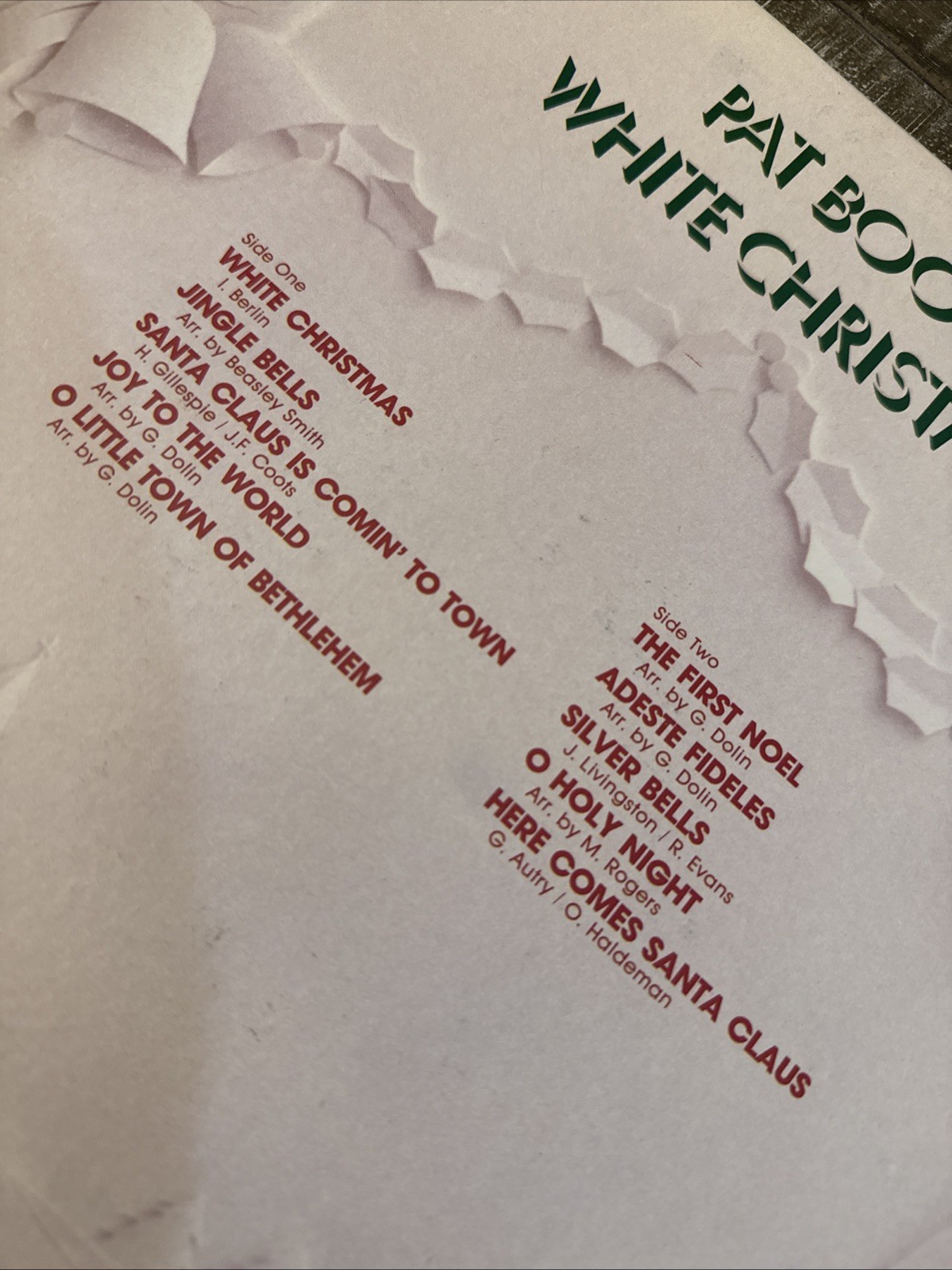 The Pat Boone White Christmas Album is a classic record featuring the artist Pat Boone accompanied by an organ instrumental. The album showcases a collection of Christmas songs that have been performed in a traditional and heartfelt manner, perfect for listeners looking to enjoy some festive tunes during the holiday season. The white color of the record adds a touch of elegance to this classic Christmas album.