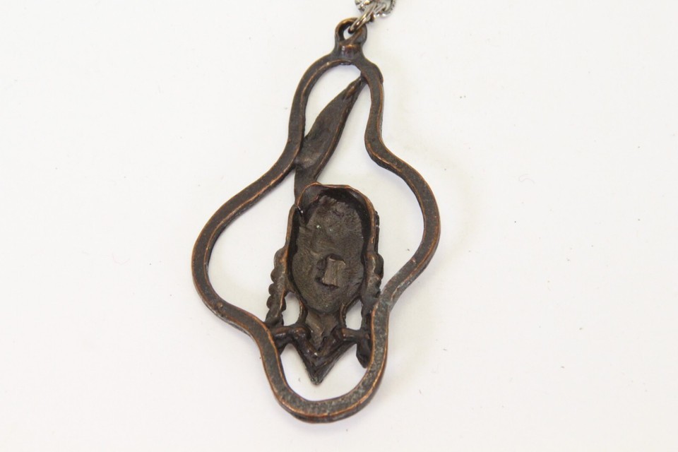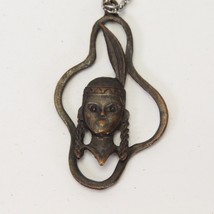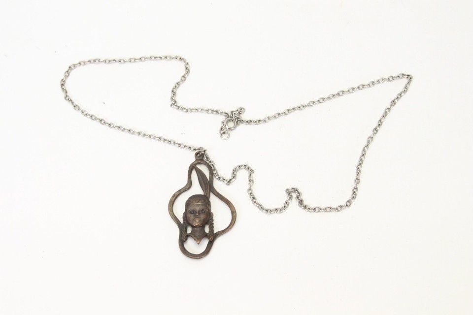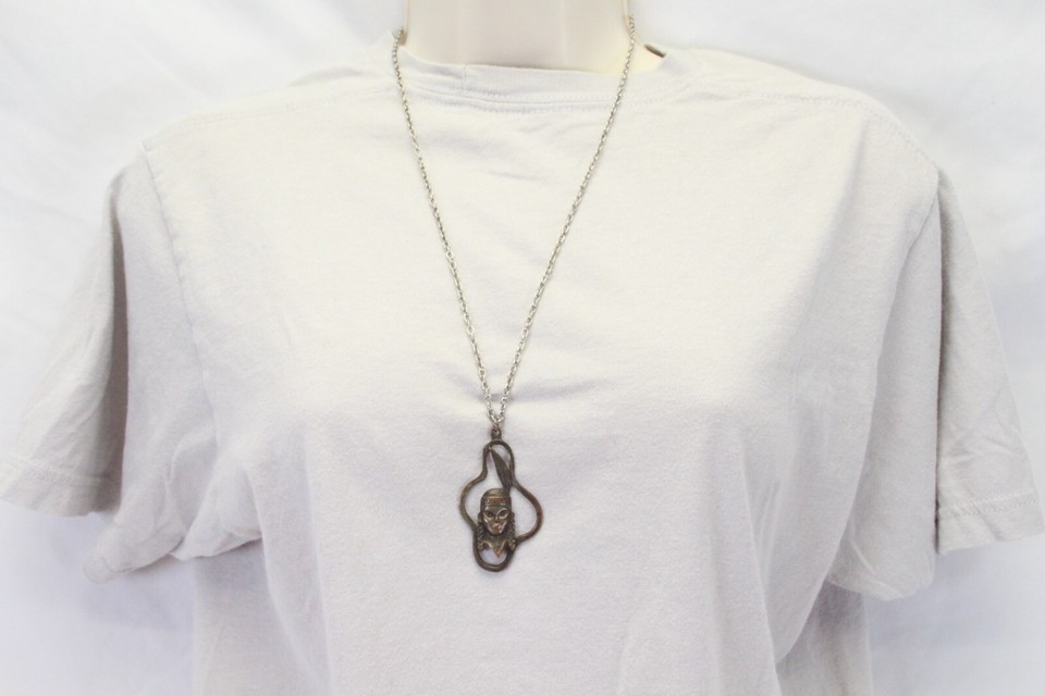 Native American Indigenous Pendent 2.2" H x 1.3" W Metal Necklace 24"L