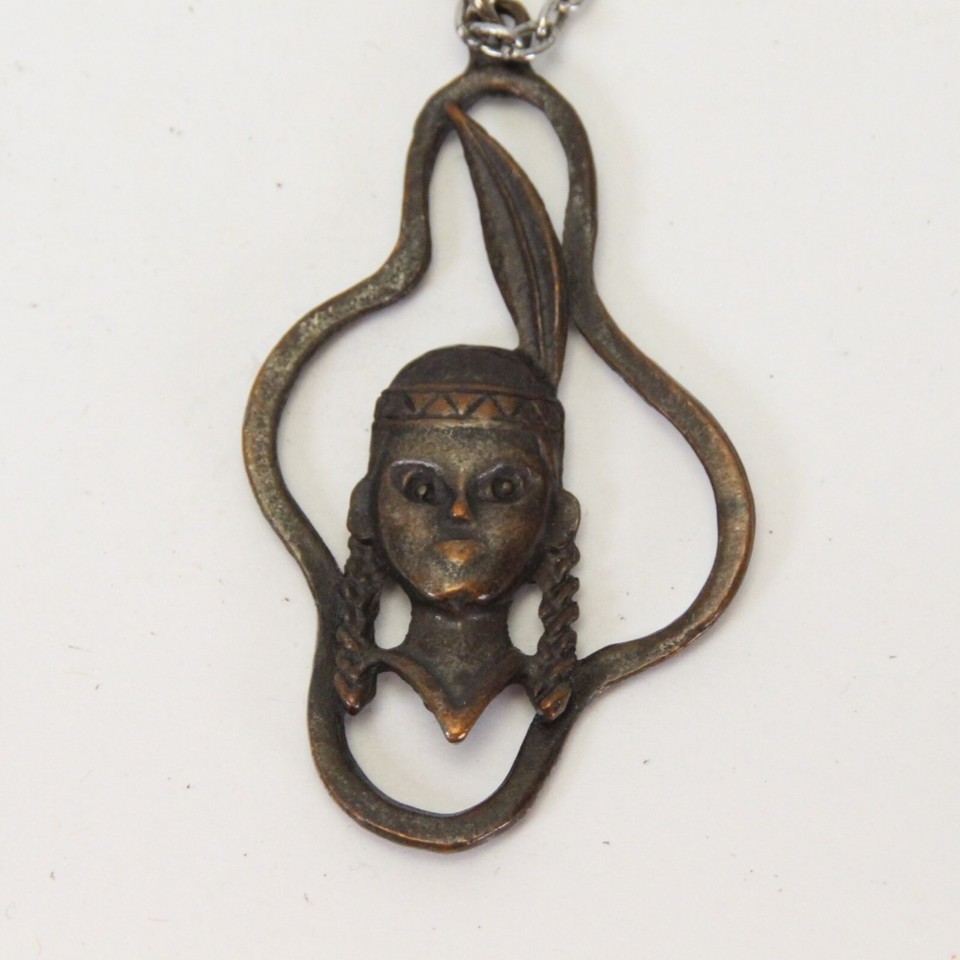 Native American Indigenous Pendent 2.2" x 1.3" Metal Necklace 24"L