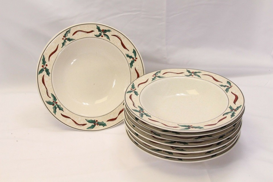 Farberware Holly Berry Rim Soup Bowls Christmas 8-1/4" Lot of 8 Xmas