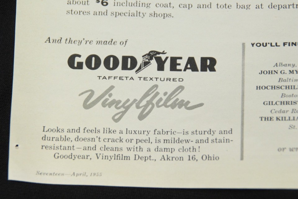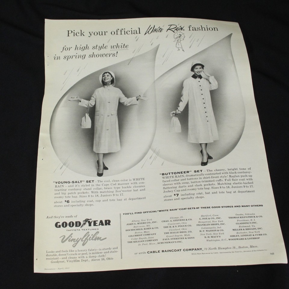 Vintage Print Ad 1955 Good Year White Rain Fashion Vinyl Film Coat