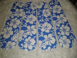 CUSTOM TROPICAL BLUE WHITE HIBISCUS FLOWER CEILING FAN ~ LAST ONE LEFT!