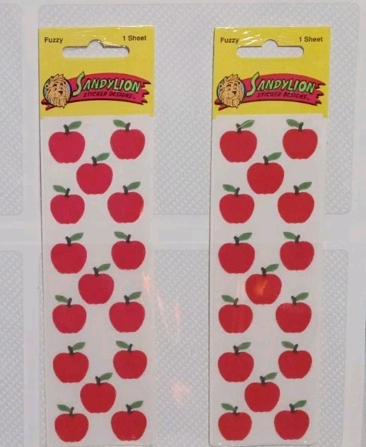Vintage 1980s Sandylion 2pc Sheet Fuzzy Apple Stickers