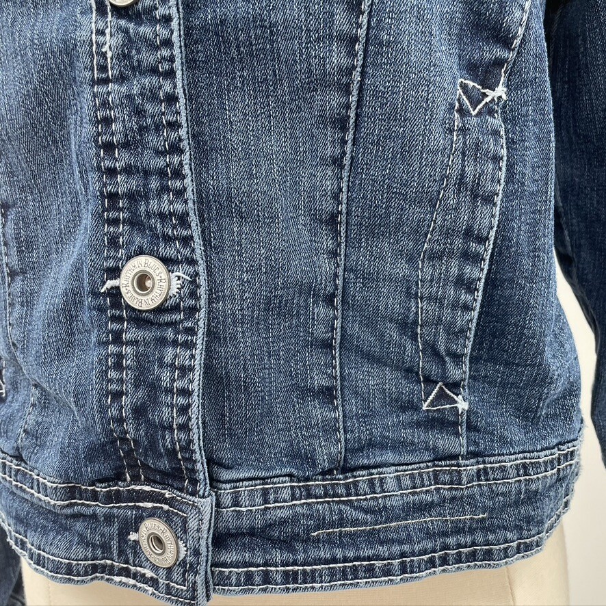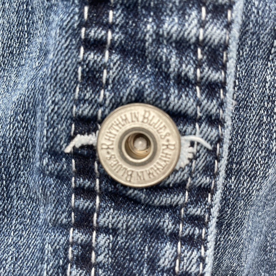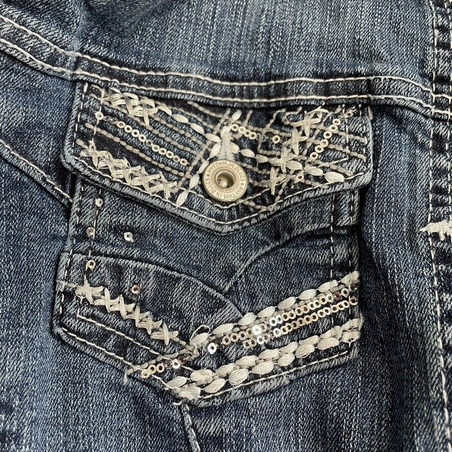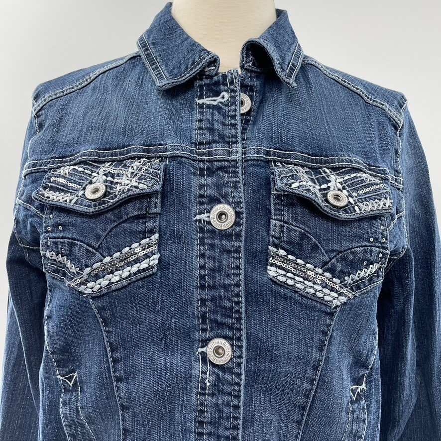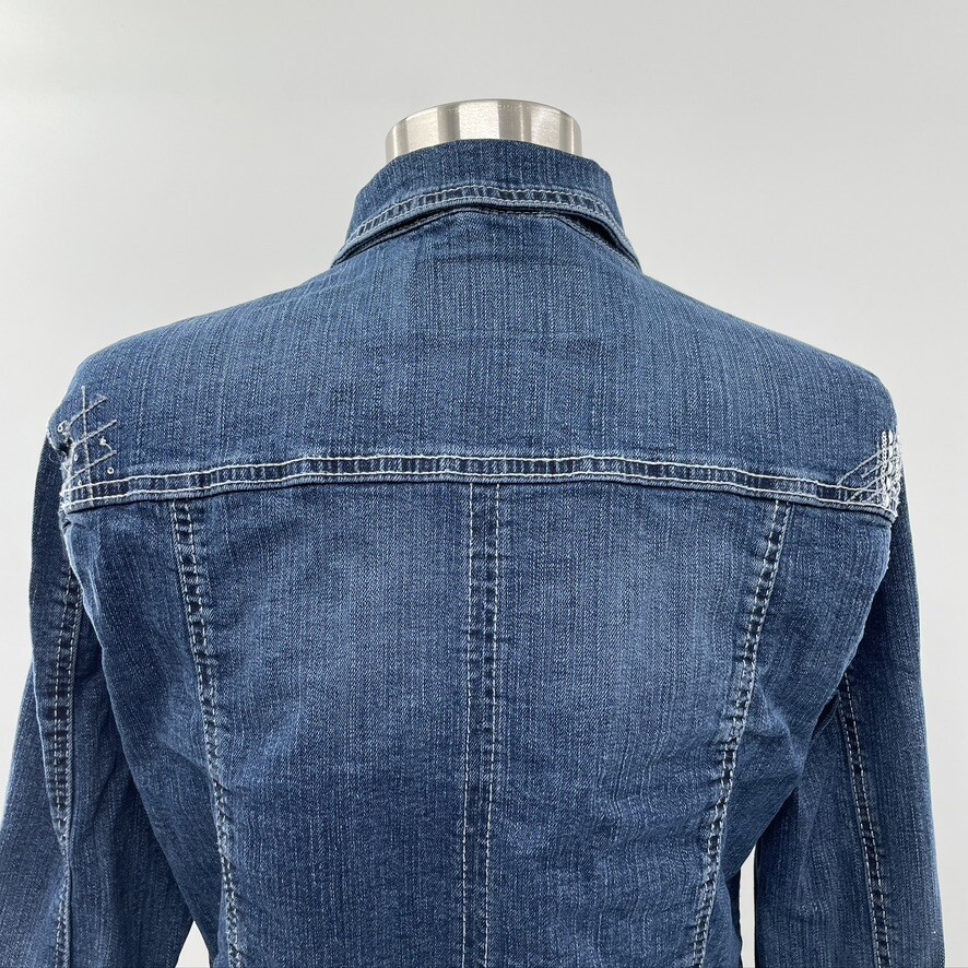 Rhythm in Blues Womens Blue Denim Button Up Embroidered Jean Jacket