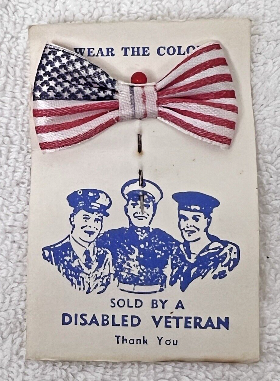 American Flag Silky Ribbon Pin on Disabled Veterans Card 1 3/4 x 1 inch just the silky flag part Never off the card the pin might have some rust it has a red top so could be replaced