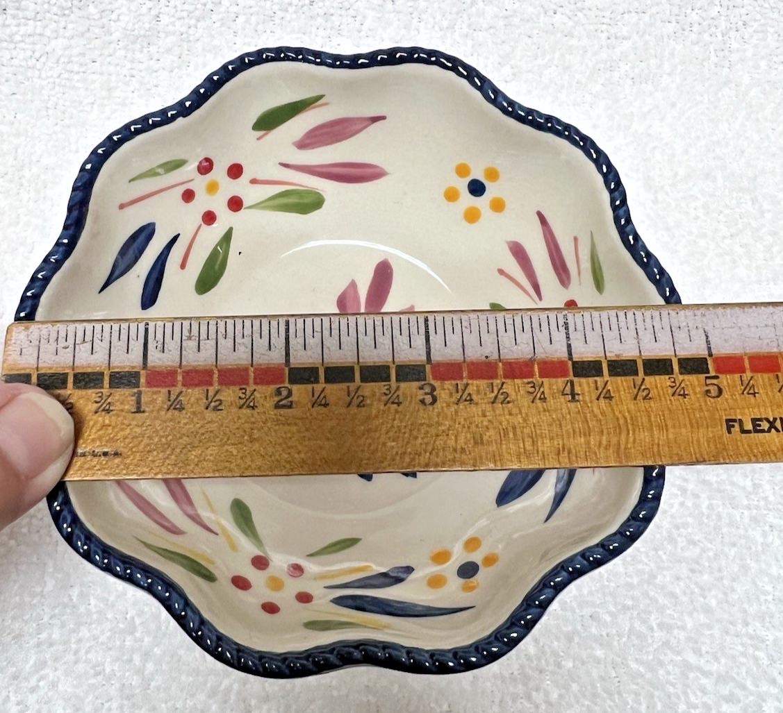 Temptations By Tara Ruffled Bowls Old World Cobalt Blue Lace Edge Floral 5" x 2"