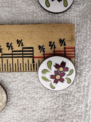 2 Vintage Red Flower Green Leaves on White Cloisonne Enamel Buttons 7/8 Inch you get 2 for the price both in great shape