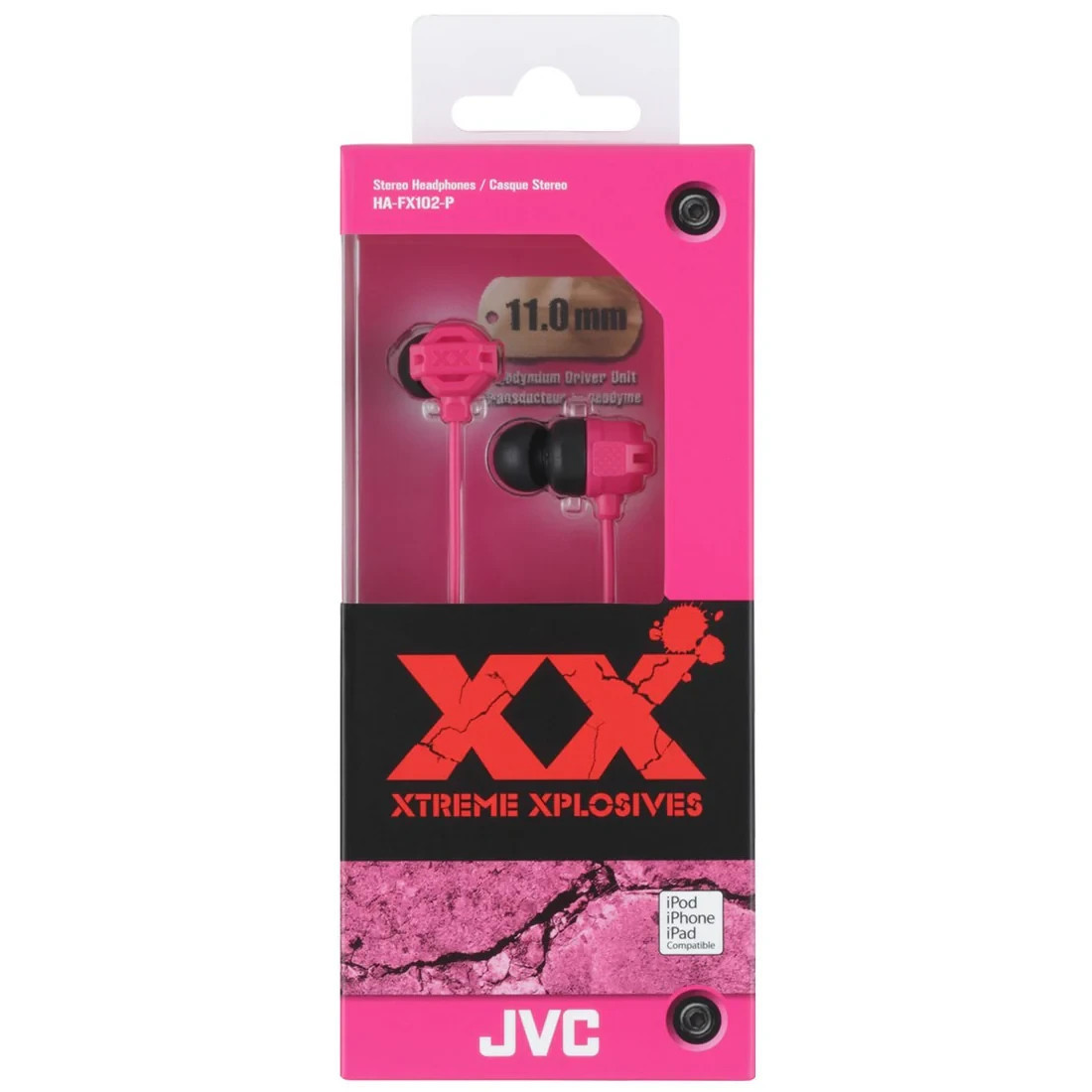 Experience powerful sound with the JVC HA-FX102-A XX Xtreme Bass Earbuds, built for music lovers who crave deep, rich bass. Engineered with 11 mm neodymium drivers and Xtreme Deep Bass Ports, these wired in-ear headphones deliver explosive audio performance across a wide frequency range of 5 Hz to 23,000 Hz. The rugged design ensures durability while the comfortable fit makes them perfect for everyday listening, workouts, or travel. With a standard 3.5 mm connection, 1.2 m tangle-resistant cord, and a sensitivity of 104 dB, these earbuds combine high-impact sound with convenience and reliability.