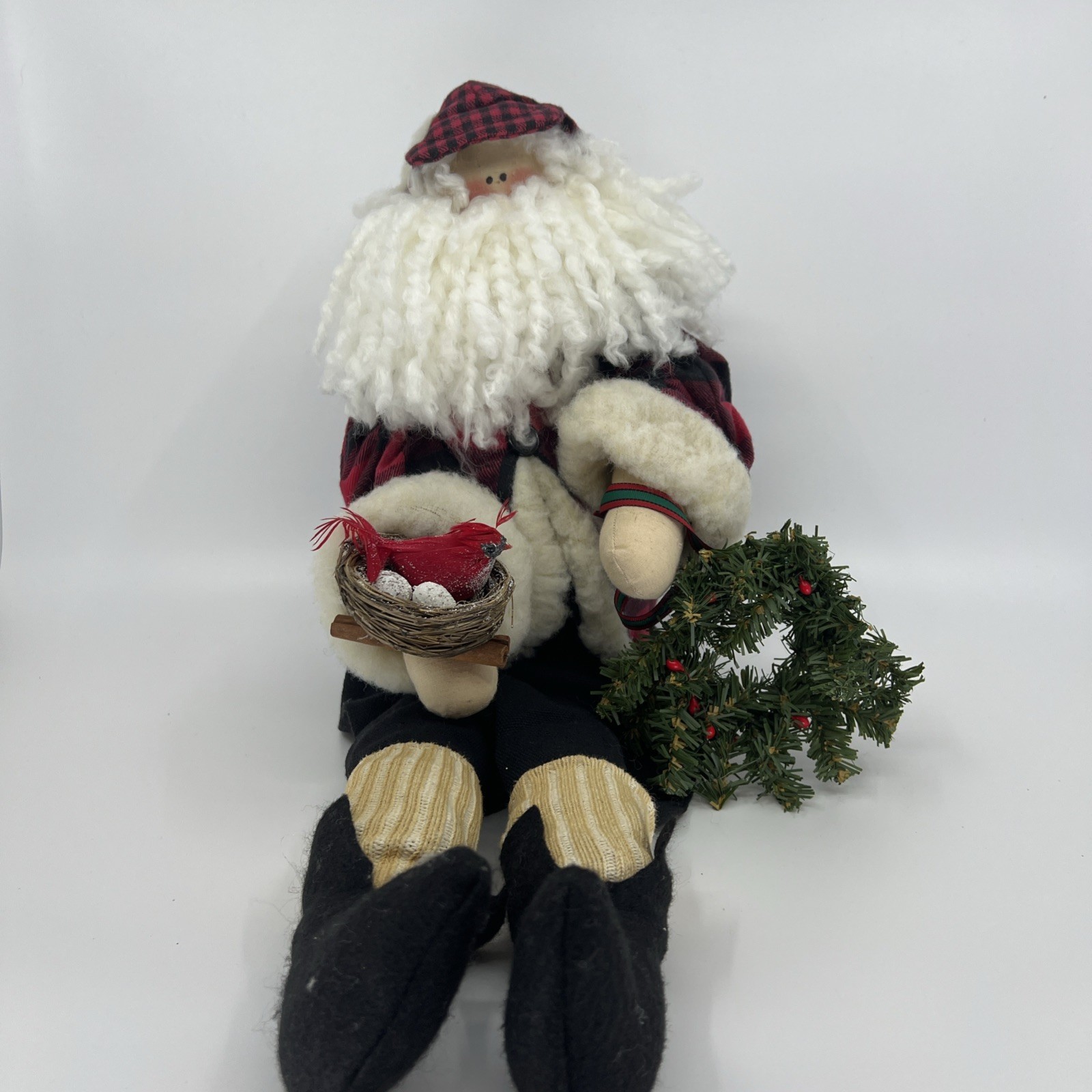 Vtg Hunter Woodsman Santa Shelf Sitter/Dangling Feet Artist Signed/#ed Cardinal