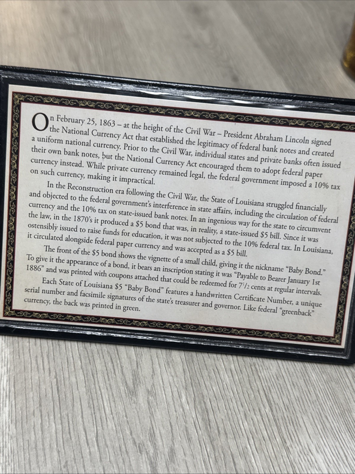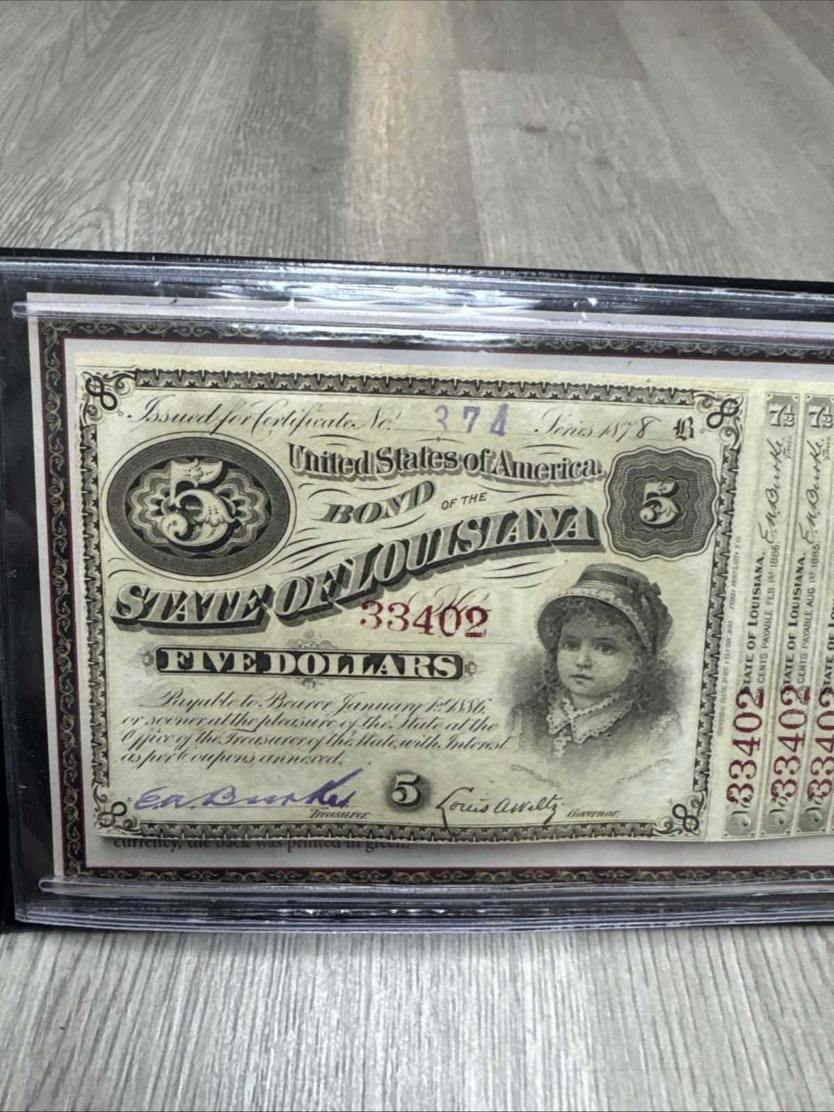 five dollar baby bond from 1898, state of Louisiana, five dollars.