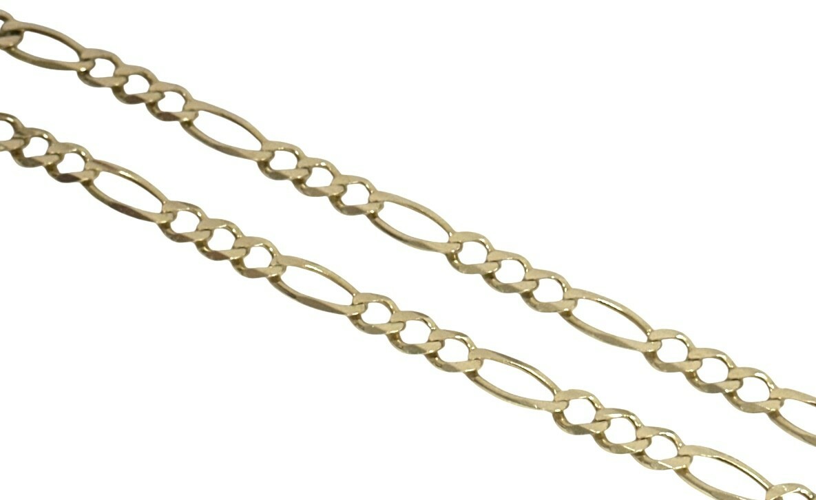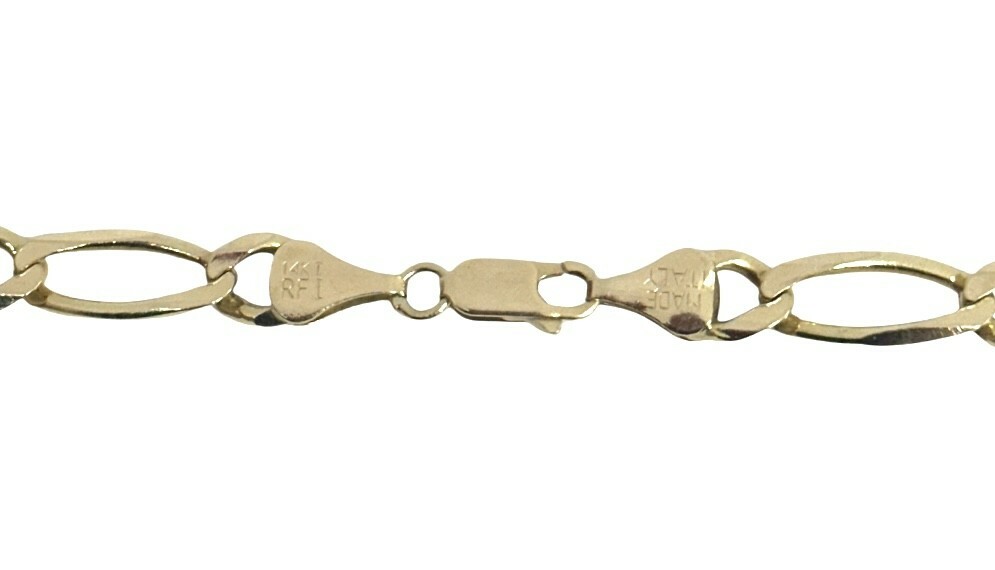 Type: ChainWeight: 21.5Karat: 14ktMetal: Yellow GoldGender: UnisexStyle: FigaroSize / Length: 21"Owner applied: RFI 14kt Italy MadeWidth: 7mmCondition:Used