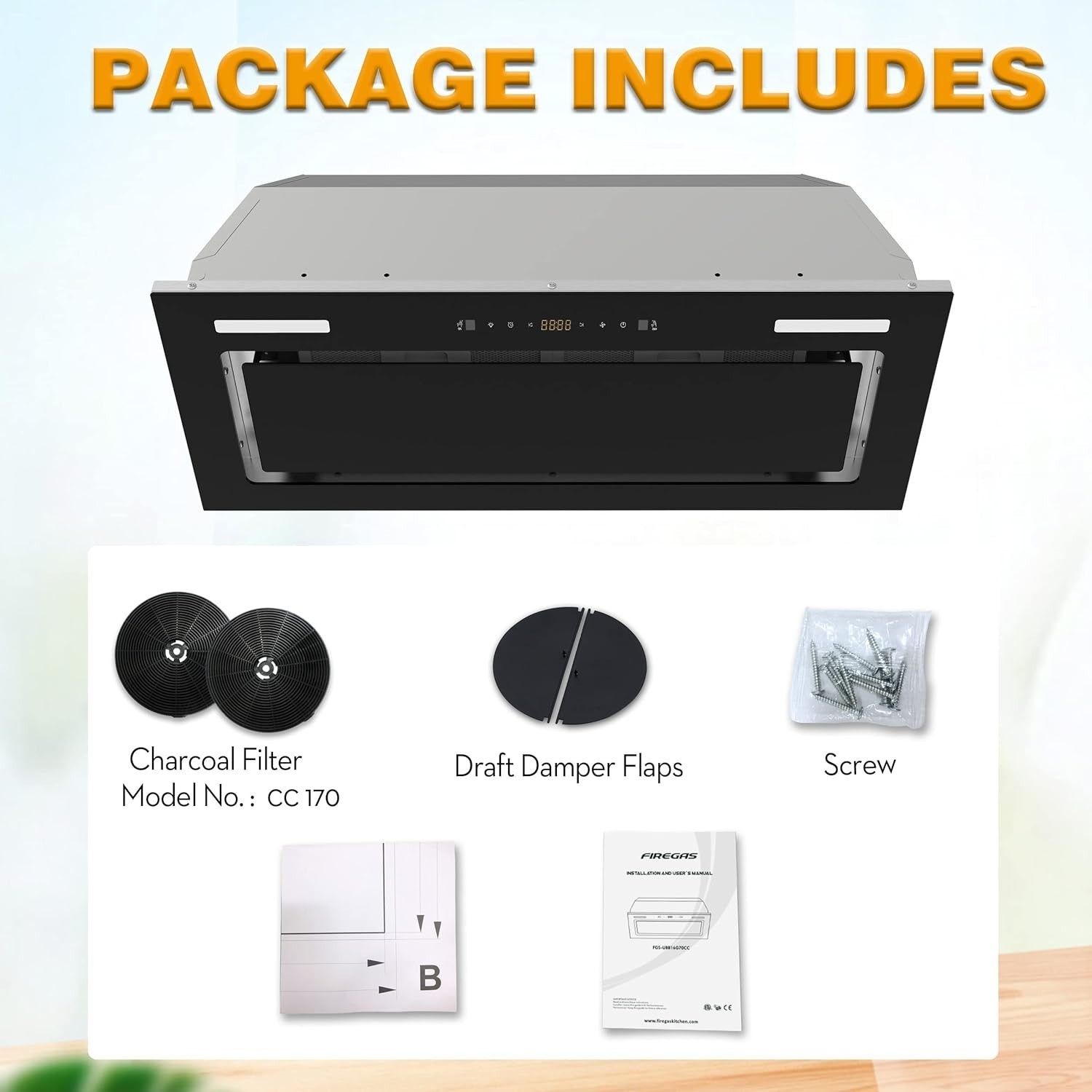 EASY TO INSTALL AND OPERATION: Easy to install with the instruction manual and the installation guide video.Built-in style installation of range hood 30 inch are perfect for various kitchen decors.Remodel your entire kitchen with Firegas insert range hood.Product Dimensions:11.4"D x 27.8"W x 11.5"H,Electrical:120V/60Hz,3-prong plug,5.9 inch round top vent.