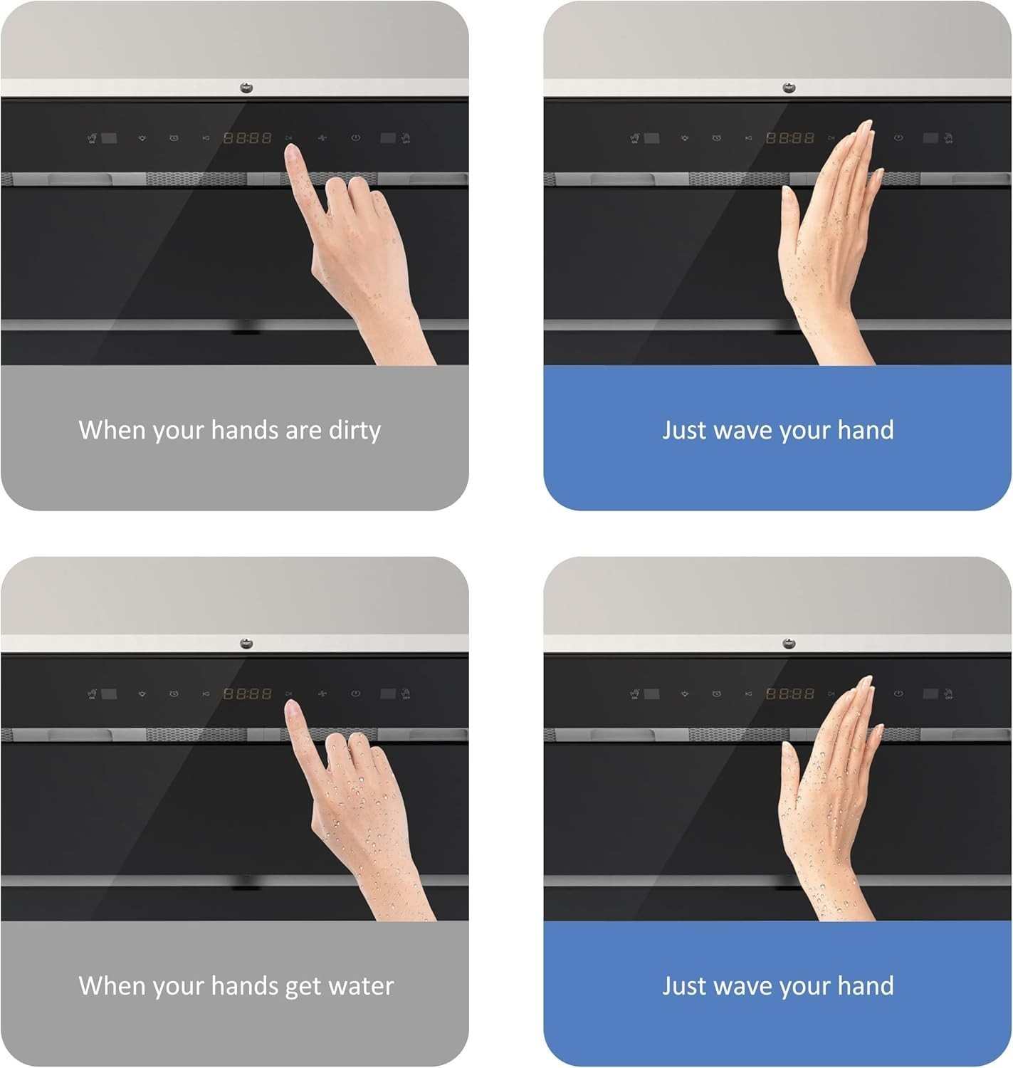 WORK EFFICIENTLY RANGE HOOD 30 INCH: 600 CFM range hoods with powerful 3-speed blower, it can quickly removes smoke, steam, grease, and cooking odors, the exhaust fan is designed for heavy-duty cooking.In addition to digital soft-touch controls,range hood adds smart gesture control, close to the panel, wave your hand gently, you can control the switch and adjust fan speed.