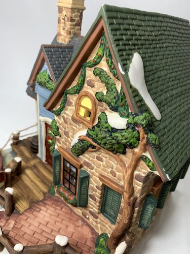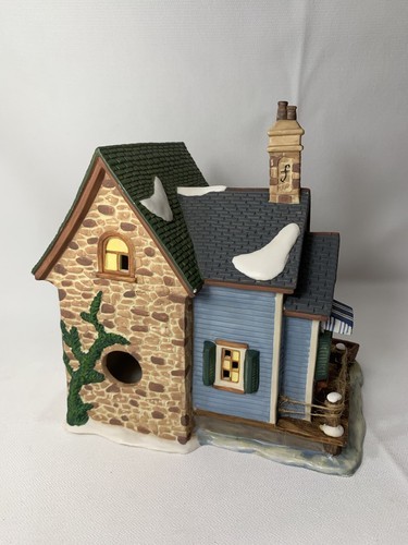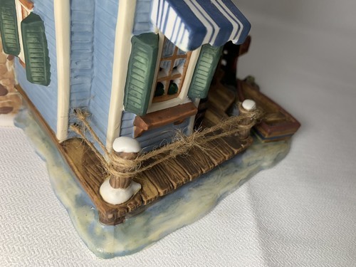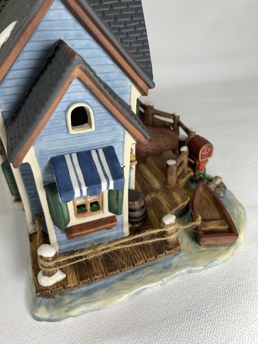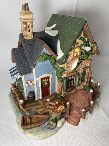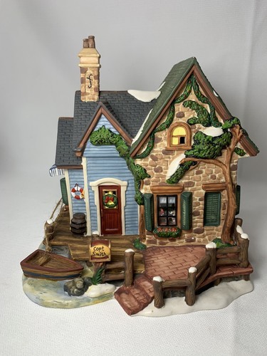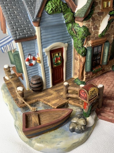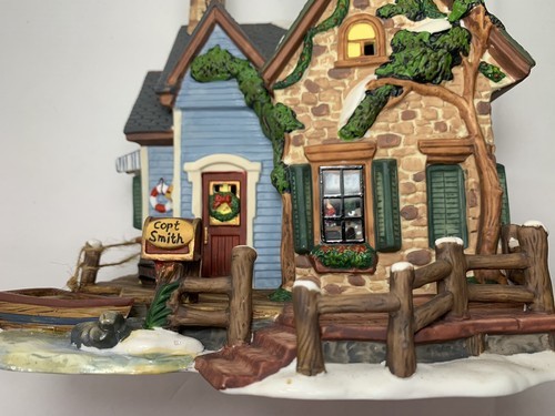 Neato Village piece, hand painted, and made to fit right in with all the other village pieces. Lights up as it should. This house is on the harbor side of the water, with a captain Smith Mail Box at the water. Comes with original box/packing.