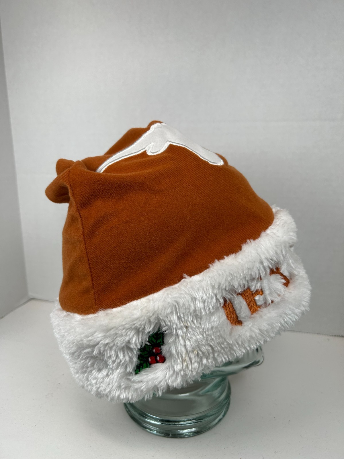 UT Texas Longhorns Christmas Santa Hat NCAA Burnt Orange Embroidery Logo & Holly