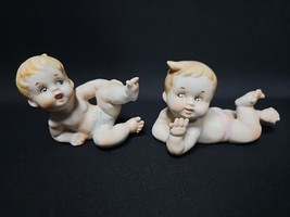 Adorable pair of vintage bisque porcelain baby figurines by Norleans Japan.