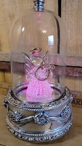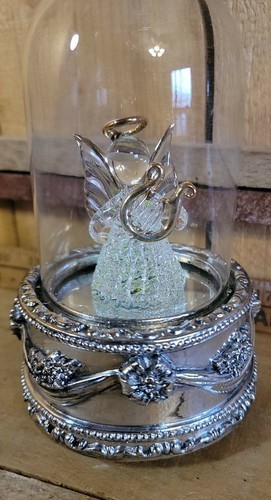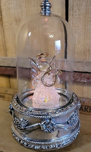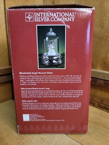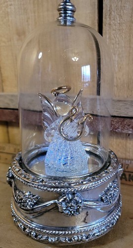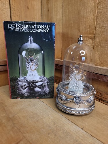 INTERNATIONAL SILVER CO SPUN GLASS ROTATING ILLUMINATED ANGEL MUSICAL GLOBE 7" H