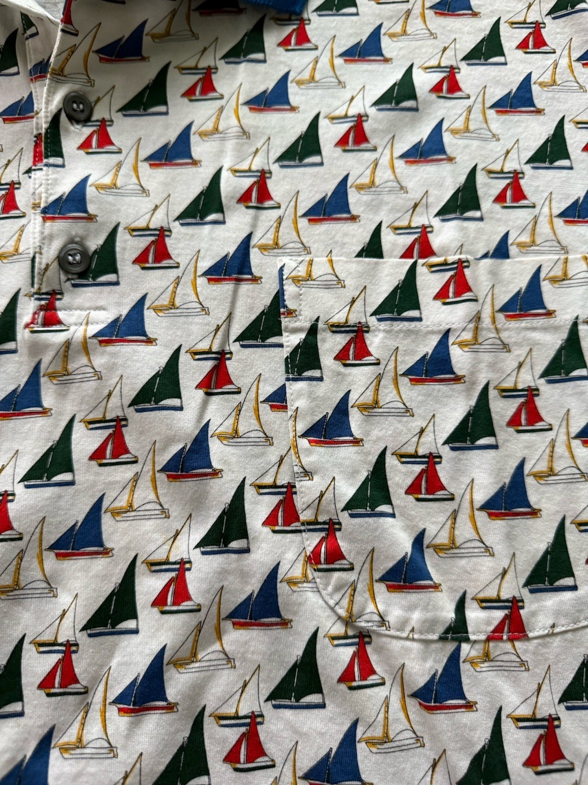 Maus & Hoffman Polo Shirt Mens 44 Large Blue White Sailboat Nautical - ITALY