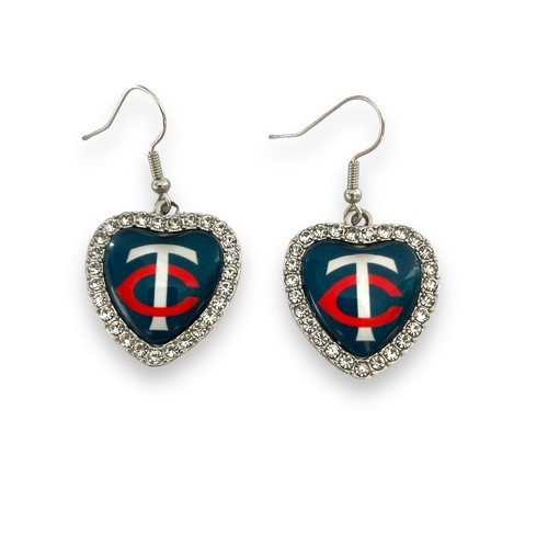 NEW WOMENS MINNESOTA TWINS MLB BASEBALL SILVER CRYSTAL HEART EARRINGS DANGLE