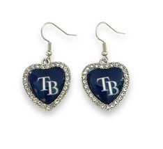 NEW WOMENS TAMPA BAY RAYS BASEBALL SILVER CRYSTAL HEART EARRINGS | DANGLE DROP