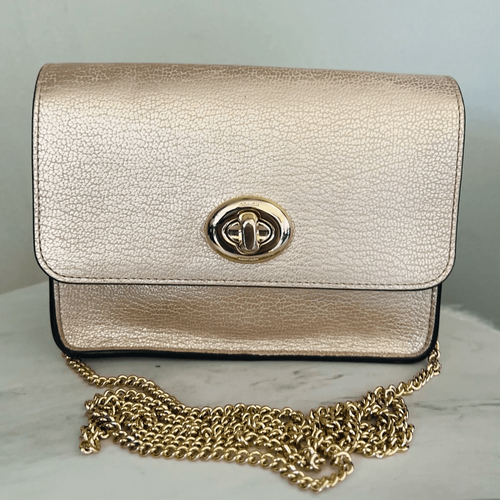 Coach Women's Turnlock Chain Crossbody Leather Bag, Platinum/Gold, NWOT