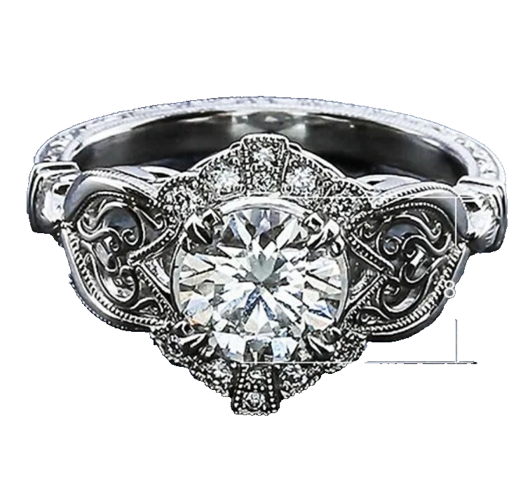 Handcrafted ~ Simulated Diamond ~ Embossed ~ Silver-Plated ~ Size 7 Ring